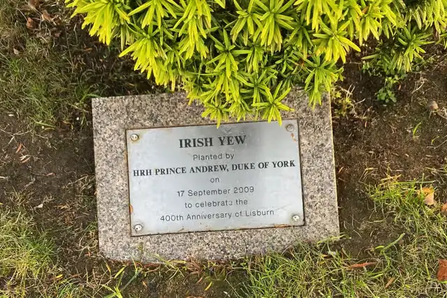 A plaque marking a tree planted by Prince Andrew, Duke of York, in Lisburn to mark the city's 400th anniversary in 2009 has been removed. The council took it down before Christmas as part of a site tidy-up. Officials confirmed no plans exist to replace it.